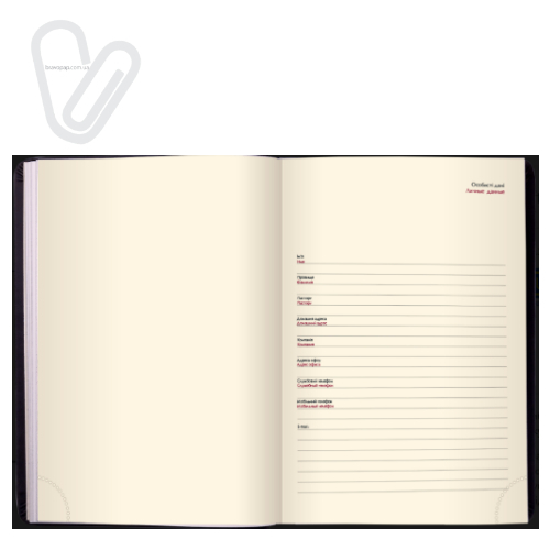 - Алфавітна книга для внесення контактів.