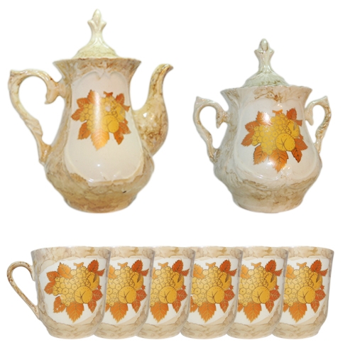 Сервиз чайный "листья золото" (6 чашек+сахарница+заварник)